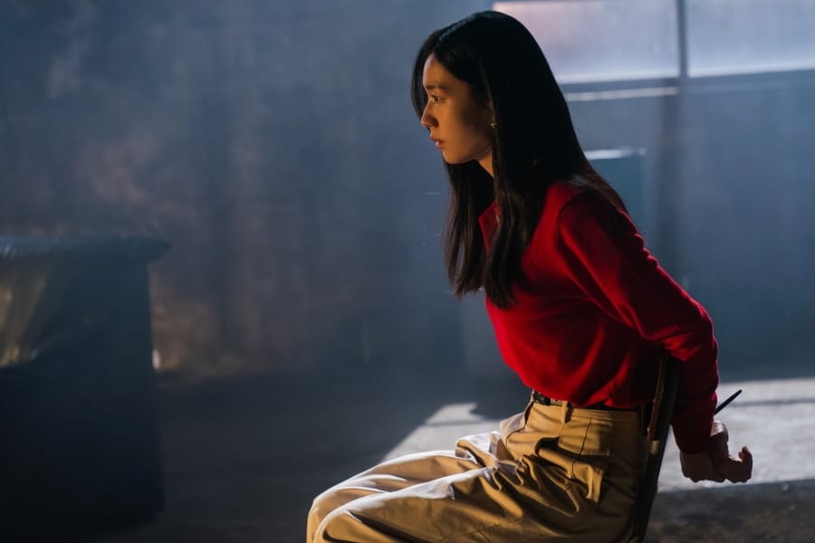 But the mood shifts sharply in the newly released stills from episode 4. In a dark, warehouse-like space, Go Da Rim is shown bound and held captive, surrounded by mysterious men in black suits. Her facial expression as she looks at someone with startled eyes heightens the tension.