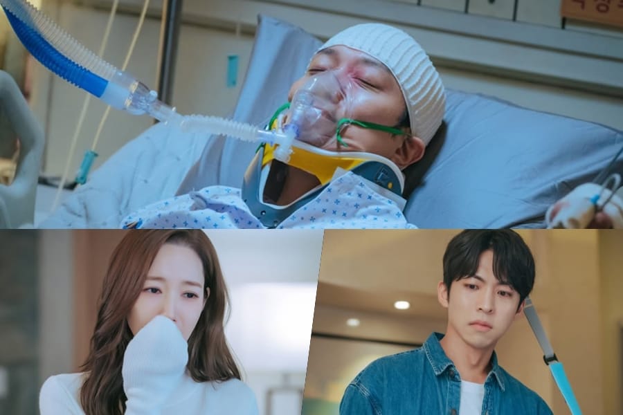 The sight leaves Yoon Yi Rang (Park Min Young) and Myung Gu Ho (Joo Jong Hyuk) visibly shaken as they arrive at his hospital room, their tearful expressions heightening the ominous atmosphere.